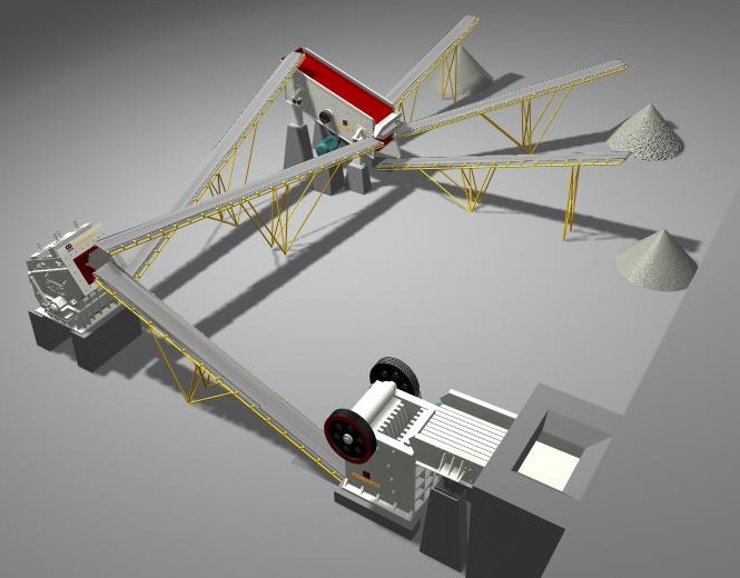 石子破碎生產(chǎn)線(xiàn)的生產(chǎn)流程大致為:(料倉)->振動(dòng)給料機->鄂式破碎機->反擊式破碎機->振動(dòng)篩->(成品石料),各設備中間以溜槽或皮帶輸送機相連。