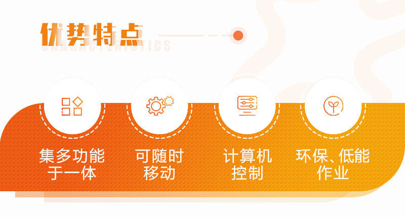 2、可隨時(shí)移動(dòng):該設備可隨時(shí)移動(dòng),僅需一個(gè)按鈕即可啟動(dòng),作業(yè)靈活,對于環(huán)境的適應能力強,對道路輸裝條件要求低。