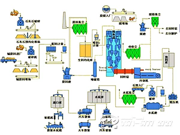 白灰回轉窯煅燒工藝可以分為濕法與干法,根據物料性質(zhì)而選擇。通常多用濕法工藝。濕法回轉窯生產(chǎn)時(shí)在生料磨中加入水,將生料制成含水為3%5左右的料漿,經(jīng)均化達到要求的料漿由窯頭喂料機送入窯內煅燒成熟料,出窯熟料經(jīng)冷卻機冷卻,送入熟料庫,原煤經(jīng)烘干兼粉磨成煤粉后再燃燒供給給熟料煅燒所需熱量。