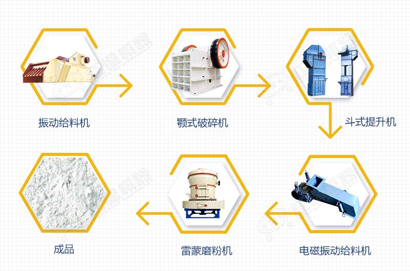 整體來(lái)講,200目石灰石粉生產(chǎn)線(xiàn)所采用的全套設備有小型顎式破碎機、提升機、電磁振動(dòng)給料機、石灰石磨粉機等,由于石灰石磨粉機內部裝有選粉裝置,因此不需要外部的選粉機,流程工藝簡(jiǎn)單,設備組成也更簡(jiǎn)潔。