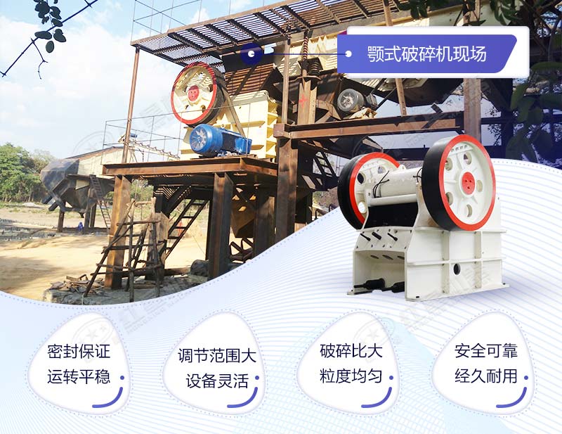 該pex250*750顎破設備結構特殊緊湊,特殊的顎頭結構,密封保證,延長(cháng)軸承壽,特殊飛輪設計,有效減少震動(dòng),機器運轉更平穩;接著(zhù)是排料口的調整裝置采用墊片式,調節范圍大,設備靈活;然后,破碎腔深并且無(wú)死區,破碎比大,產(chǎn)品粒度更均勻;最后要數整體鑄造,采用全新的裝配工藝,與機架相互配合,安全系數高。這是該顎式破碎機pex250*750的結構優(yōu)勢。